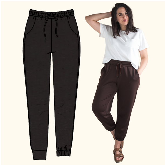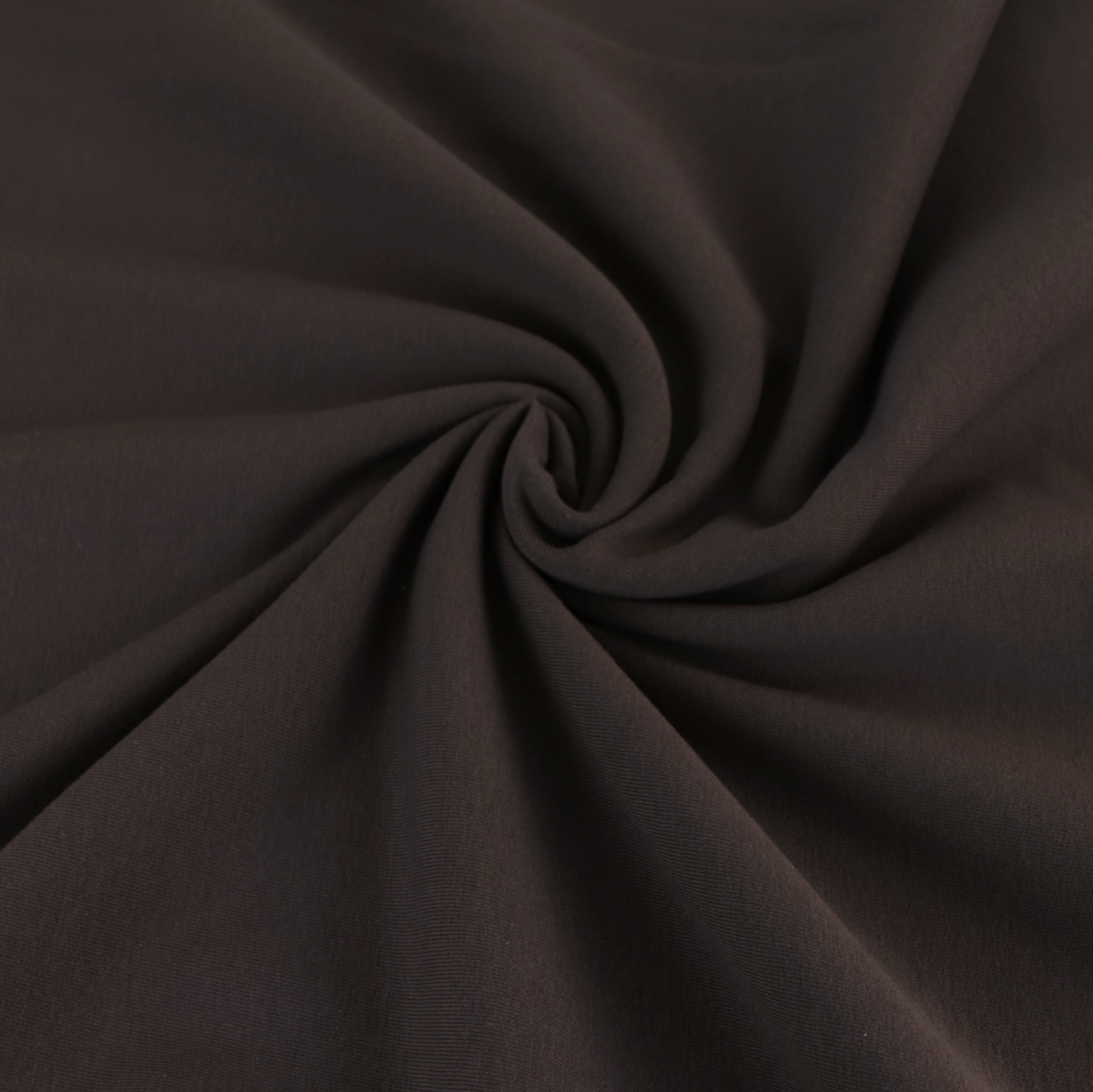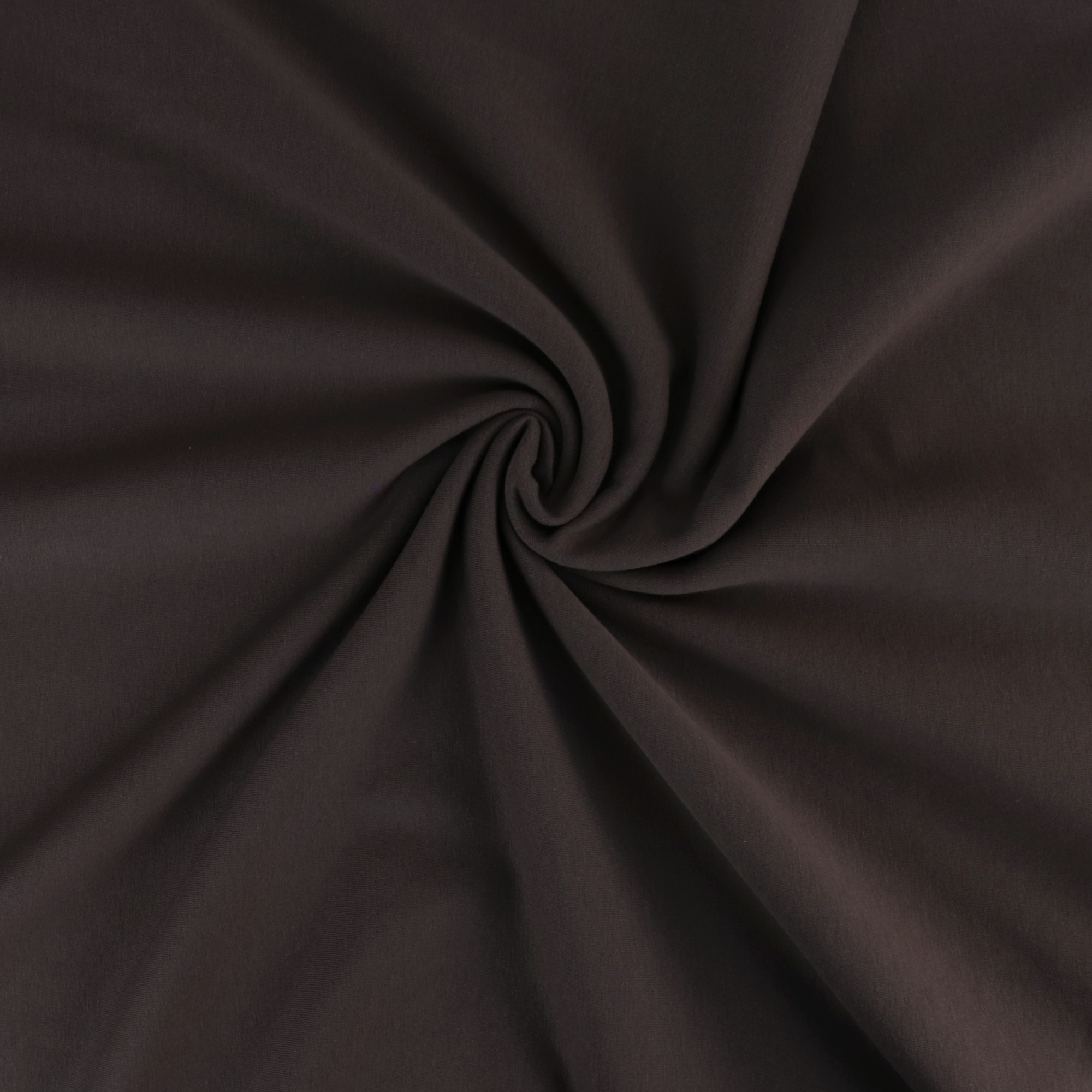 Cotton sweatshirting fabric in an espresso brown colour. This is a lighter weight sweatshirting fabric, similar weight to a french terry with a fleece backing. It has a soft brushed backing meaning that it is soft against your skin. It is ideal for sewing yourself a jumper or sweatpants, patterns such as the Linden Sweatshirt by Grainline Studio or the Plateau Joggers by Closet Core Patterns.