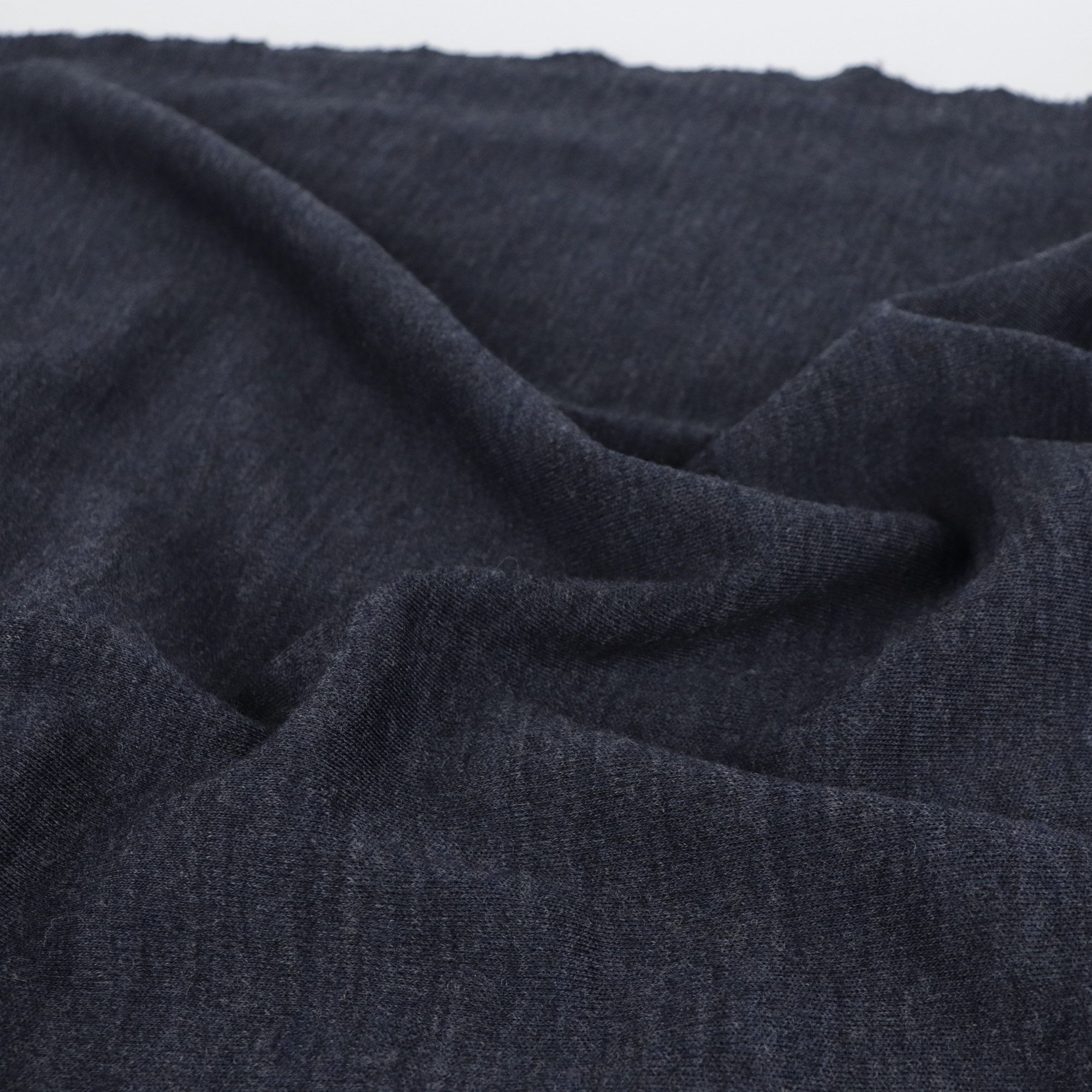Merino wool sweater knit is a dark navy blue colour. It has a luxurious handle and is soft against the skin. It is the perfect winter fabric due to its hypoallergenic and thermal qualities. It has a four way stretch with a good recovery making it ideal for rolled neck tops, long sleeve tops, cardigans and more. Other colours are available.