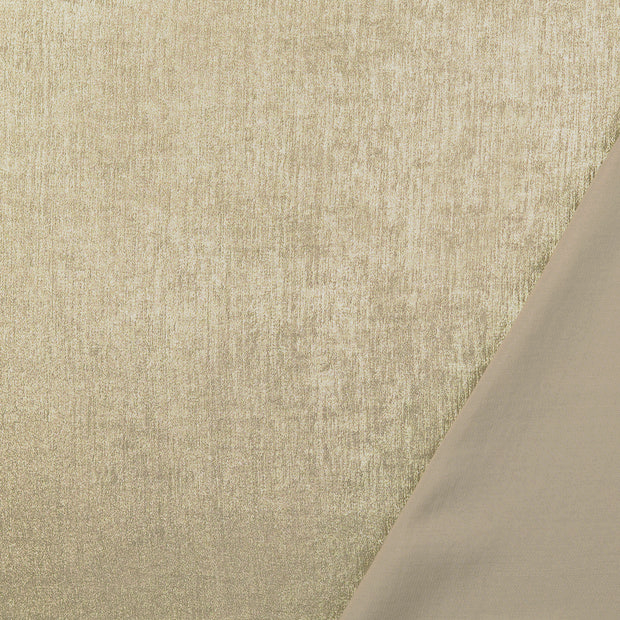Metallic satin fabric features a matte cool beige back and on the right side it features a metallic champagne gold colour with a luxurious sheen. It is lightweight and has a fluid drape. It can be used to sew yourself a cami top, such as the True Bias Ogden, a blouse, a bias cut skirt or a dress.