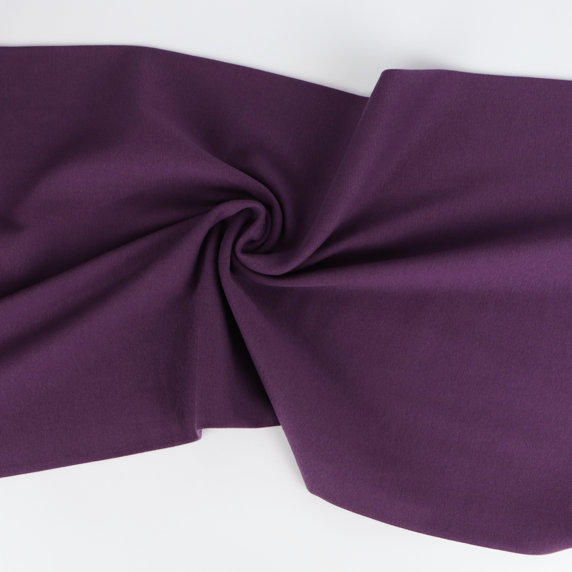 Organic cotton tubular cuffing / ribbing is aubergine purple. It is perfect for finishing off your jersey projects as it can be used for cuffs, waist bands & neck bands.
